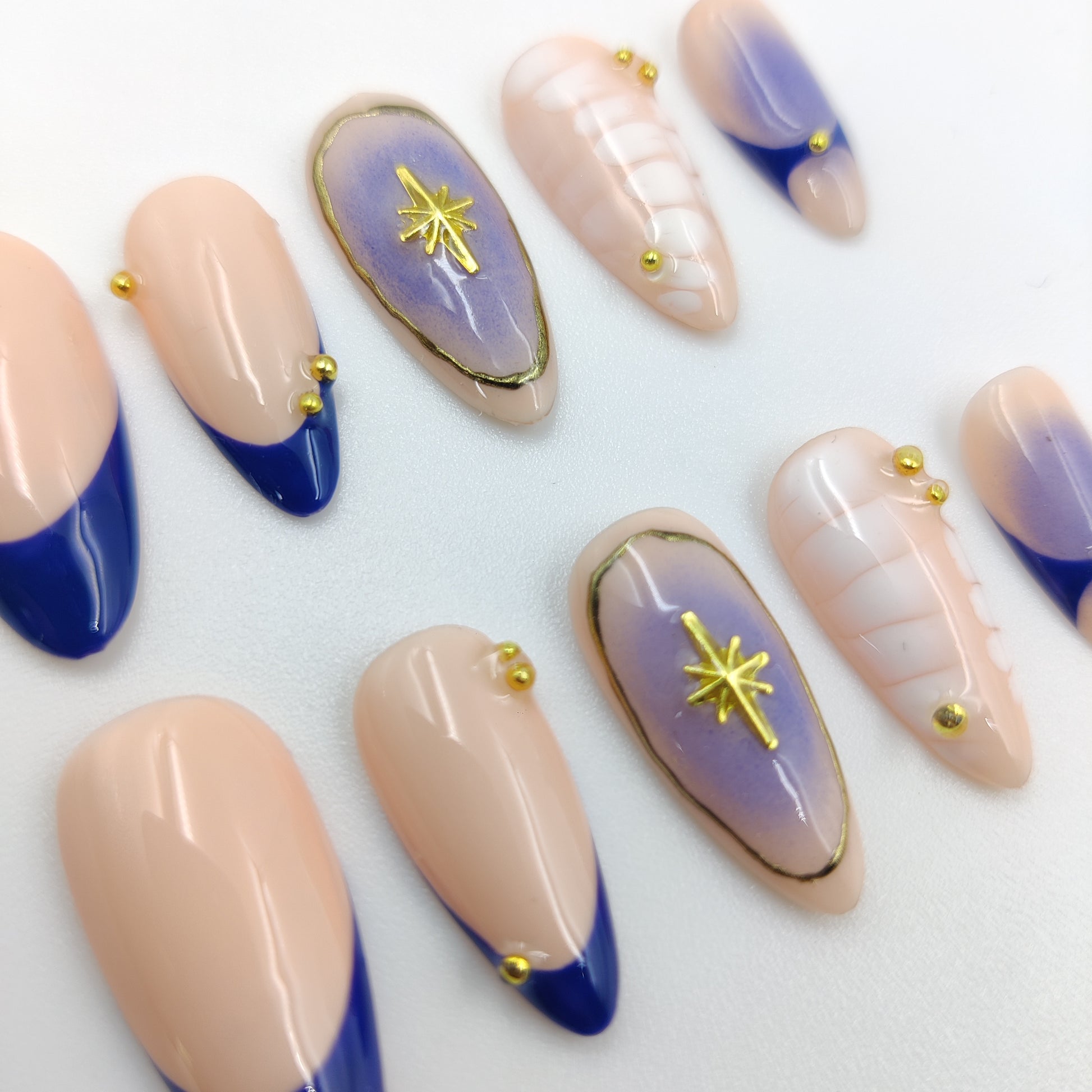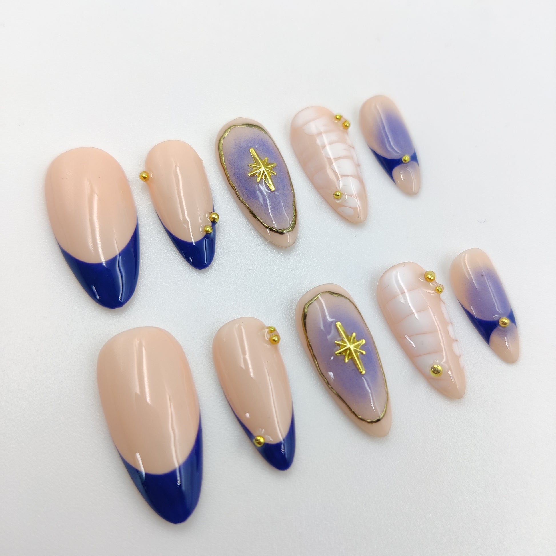 Aurora Spark – A celestial blend of deep midnight hues and soft lilac shimmer, kissed with golden accents. This set captures the magic of starlit skies and glowing auroras, perfect for anyone who loves a touch of cosmic elegance.